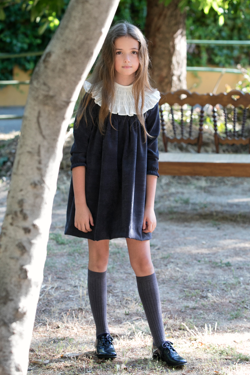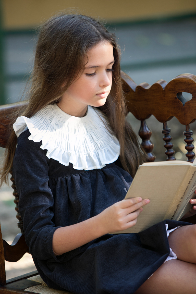 Vestido icónico de la marca con corte alto, manga fruncida y cuello fruncido muy favorecedor en batista organdizada.
