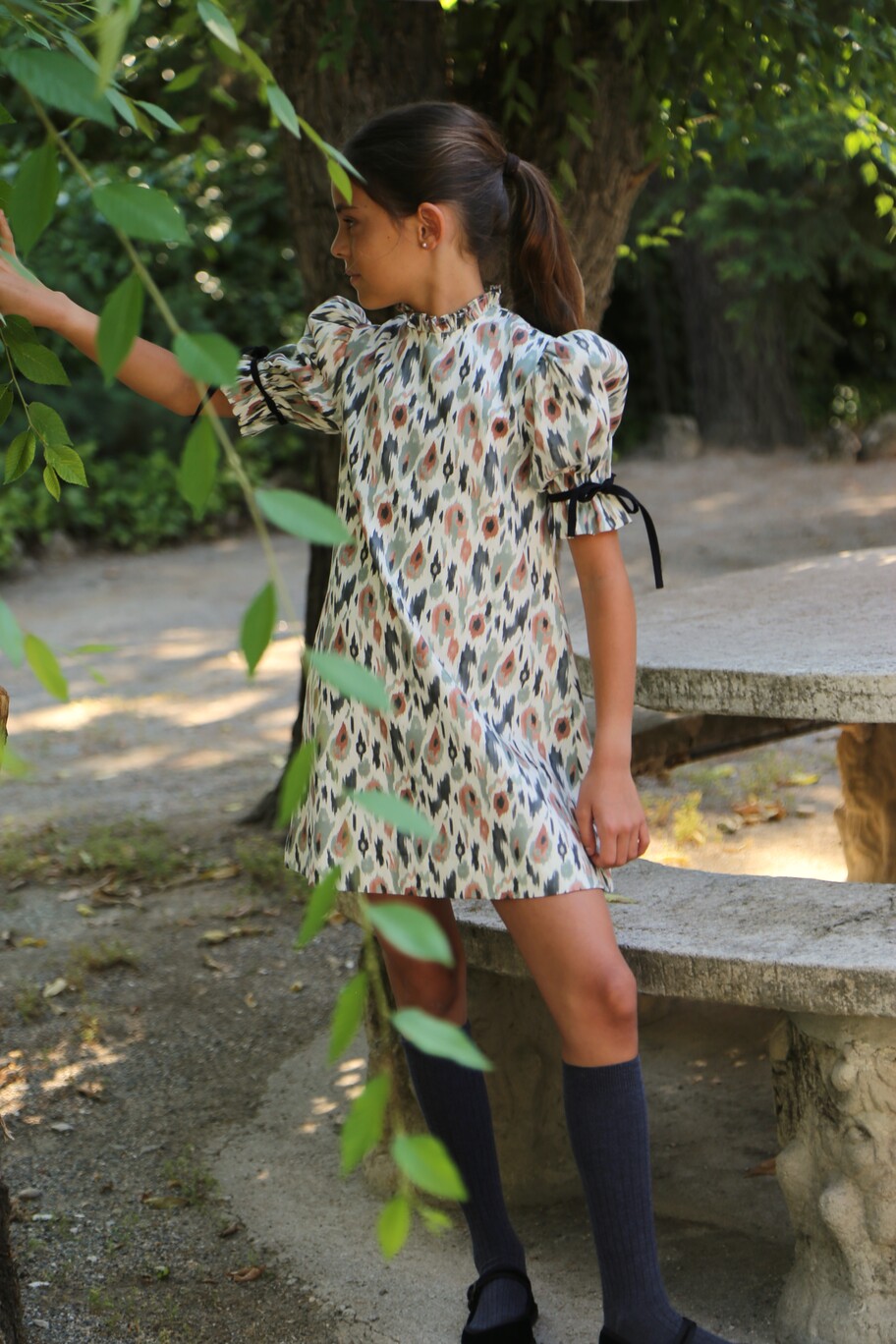 El modelo perfecto para las no tan pequeñas. Con su corte evasé y sus mangas prominentes es ideal para las niñas no tan niñas. En la foto en picnic caldero. Un acierto.
